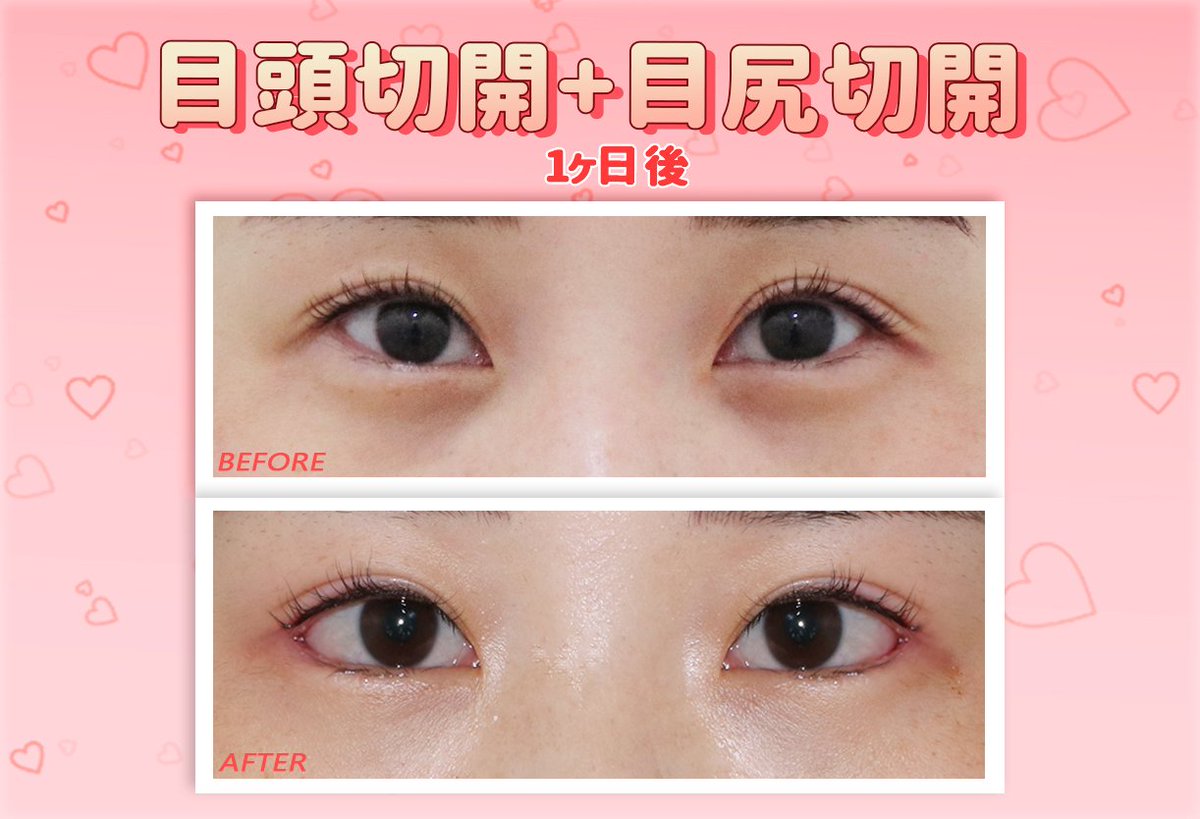 顔面不安 Twitterissa エイペックスでタレ目形成 結膜 やりました 手術前から4日間の経過です 今の所順調に腫れもひいてるし浮腫もできず ウサギ目にもならずいい感じ ただ左目の方が垂れが大きいからそれがすごく気になる タレ目形成 結膜側 整形 経過