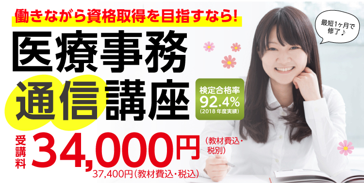 日本医療事務協会 通信 自宅で資格取得 日本医療事務通信講座 最短1ヶ月で修了 講座