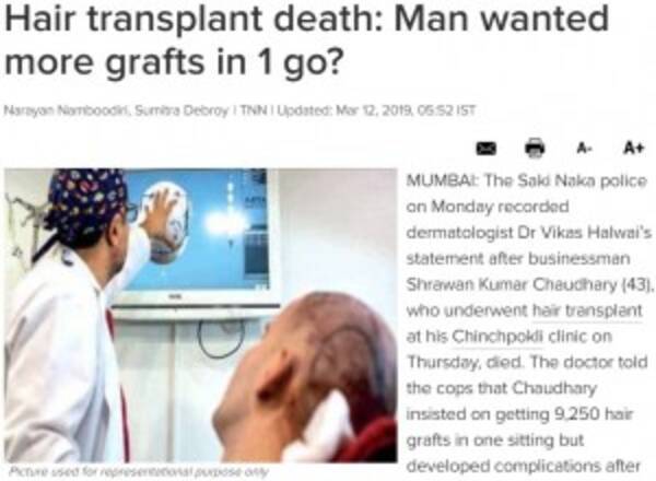 毛髪移植手術を受けた男性が死亡 アナフィラキシーショックが原因か 印 19年3月18日 エキサイトニュース