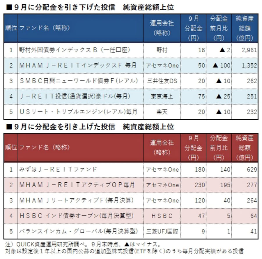 投信分配金 9月は引き下げが37本 日本経済新聞