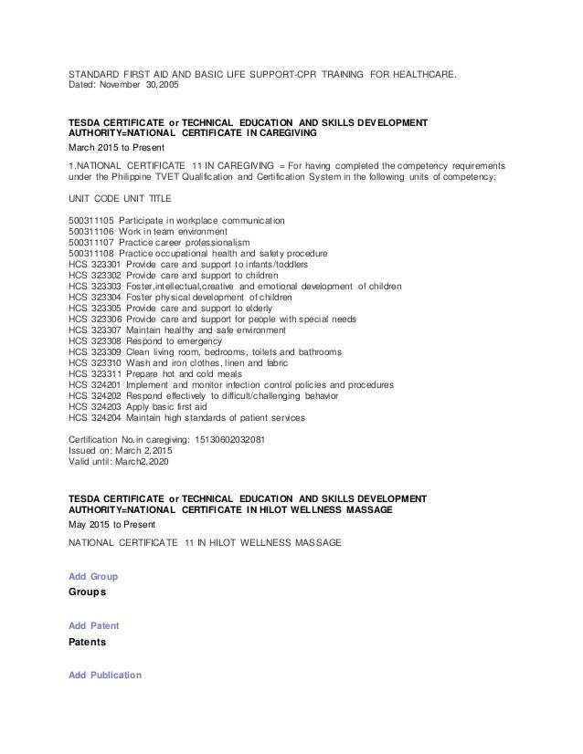 Basic Life Support Certification Resume