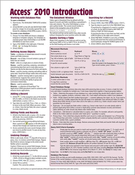 Microsoft Access 10 Free Quick Reference Card Reference Cards Microsoft Computer Shortcuts