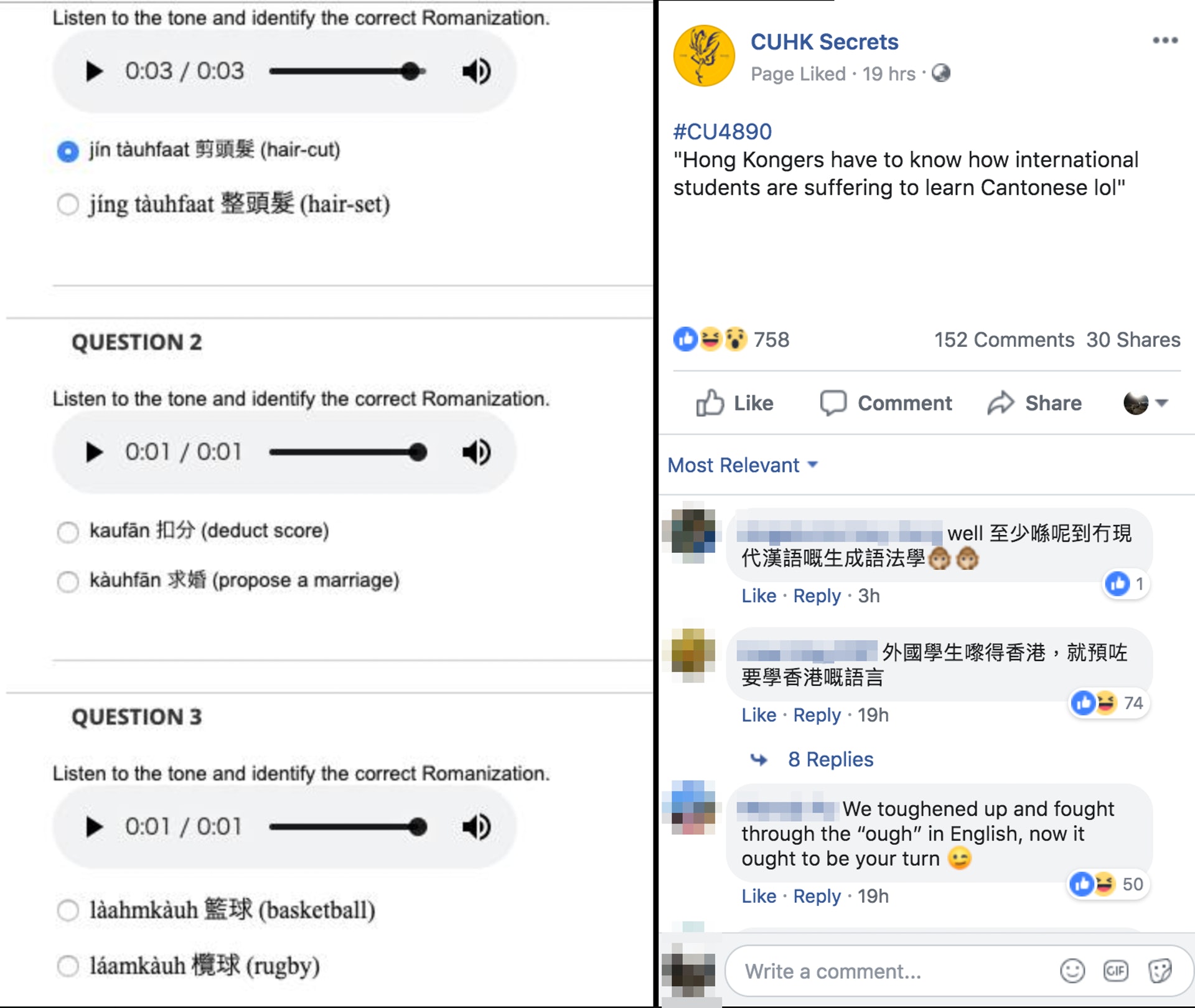 中大外籍學生大嘆學廣東話超難 扣分 求分 傻傻分不清 香港01 開罐