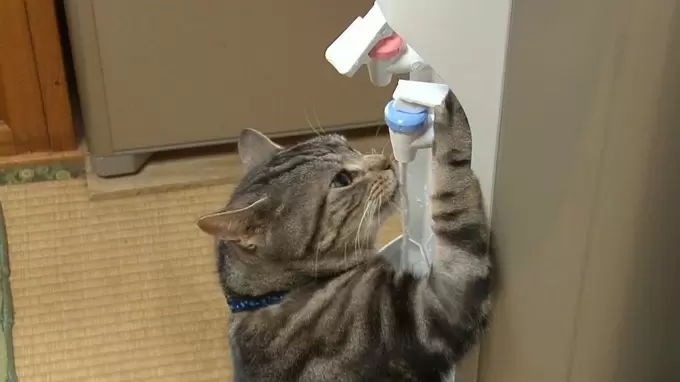 ウォーターサーバーから水を出す方法は理解したものの 飲めずにフラストレーションがたまる猫 Dna