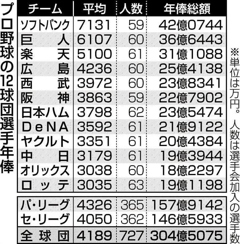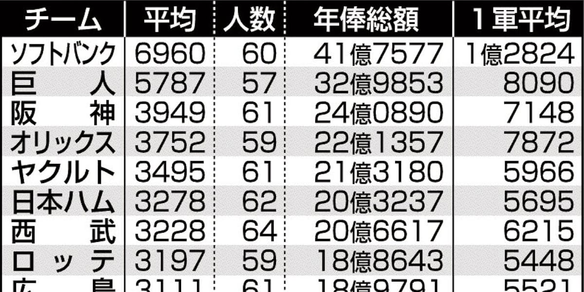選手会発表の球団別年俸 コスパ 優 は 総額トップは巨人を抜きソフトバンク 1 2ページ スポーツ Zakzak